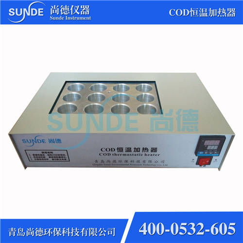 COD恒溫加熱器(COD消解儀一種采用空氣冷凝,測定化學耗氧量的加熱回流裝置。它采用PID溫控器,升溫速度快,溫度恒定均勻,操作方便,是一種實驗手段儀器化的產品。SN-102節能型COD恒溫加熱器適用于環保、醫療、衛生、食品、自來水、造紙、污水處理、印染、石化、冶金、院校等行業的水質檢測。