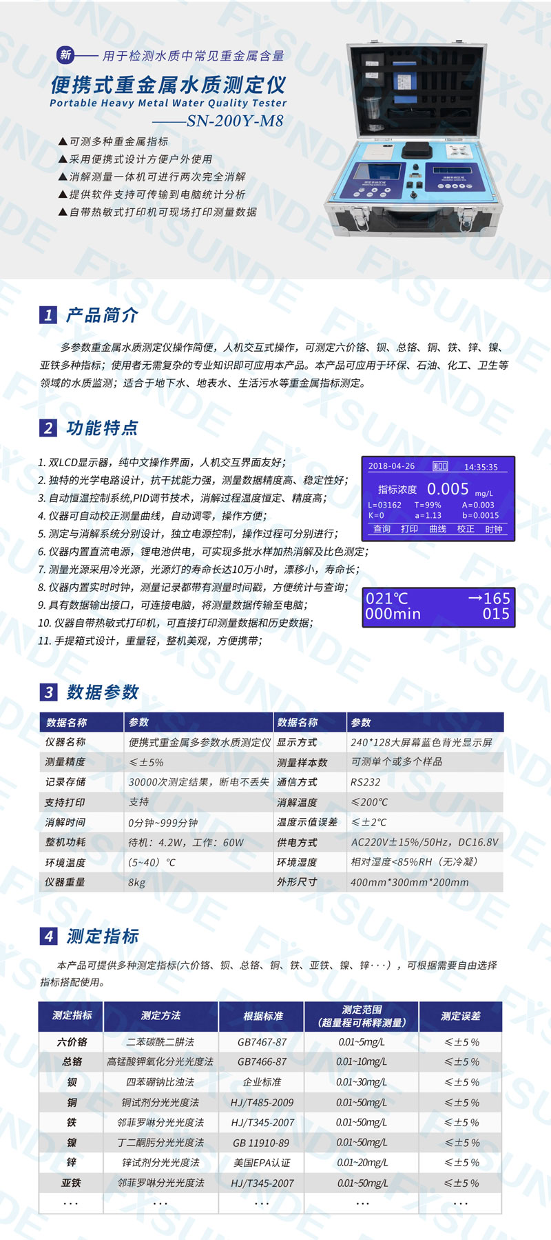 SN-200Y-M8 便攜式重金屬多參數水質測定儀