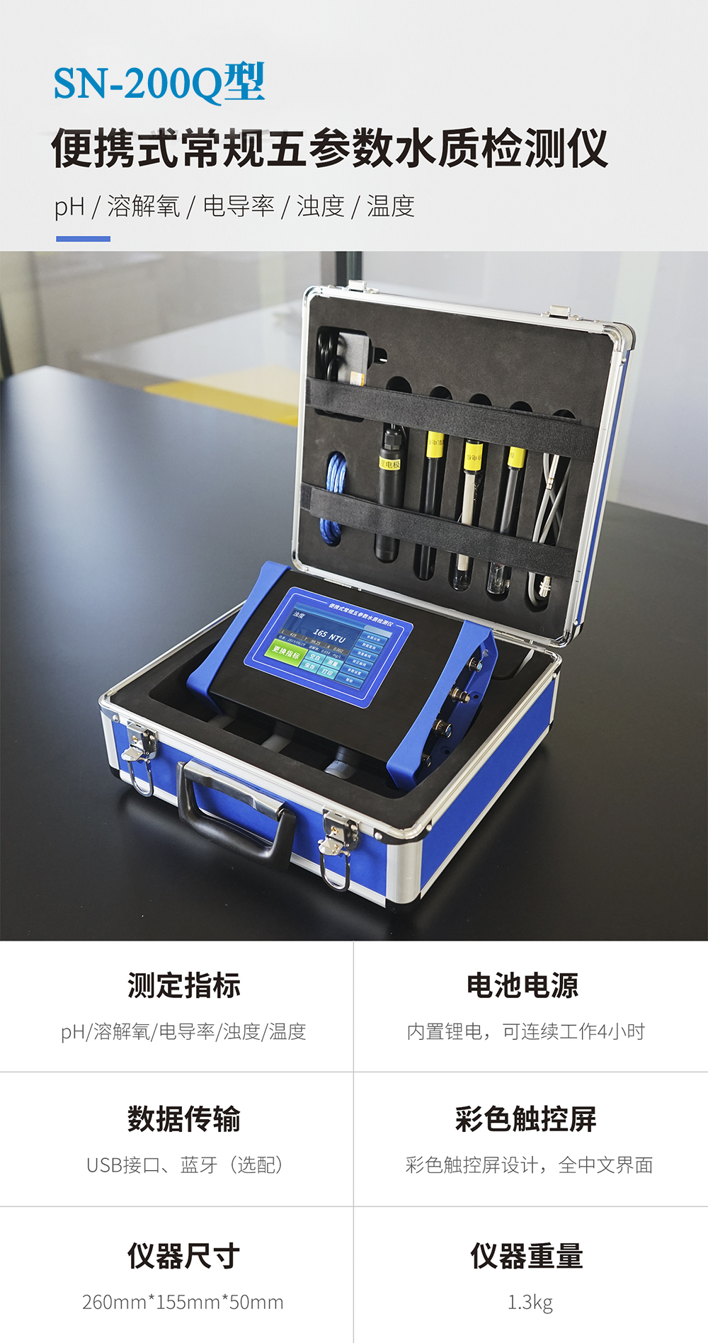 SN-200Q 便攜式常規五參數水質檢測儀(PH/溶解氧/電導率/濁度/溫度)