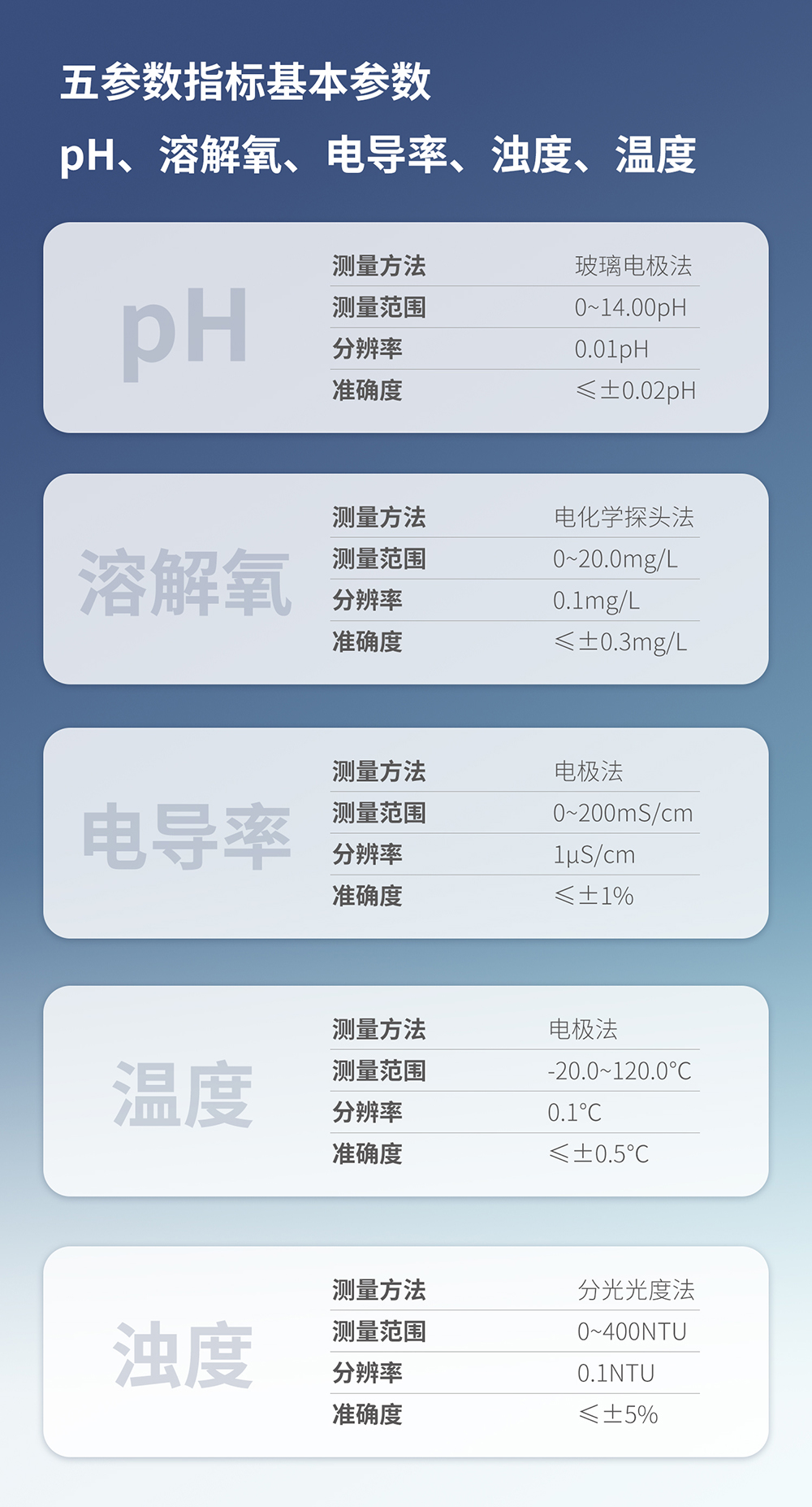 原理:電極法;量程:-20.0~120.0℃;分辨率:0.1℃;準確度:≤±0.5℃