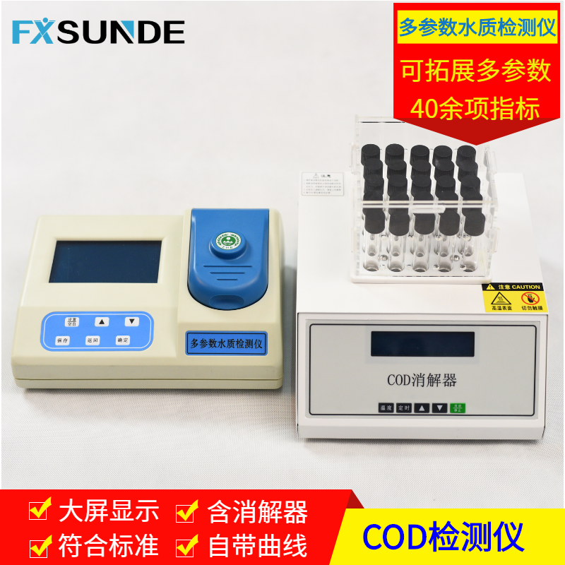 化學需氧量(COD)檢測需配備實驗室COD快速測定儀和重鉻酸鉀法COD回流消解裝置,執行HJ828-2017標準,用于進水、生化池、出水日常監測,是工藝調控的核心指標。